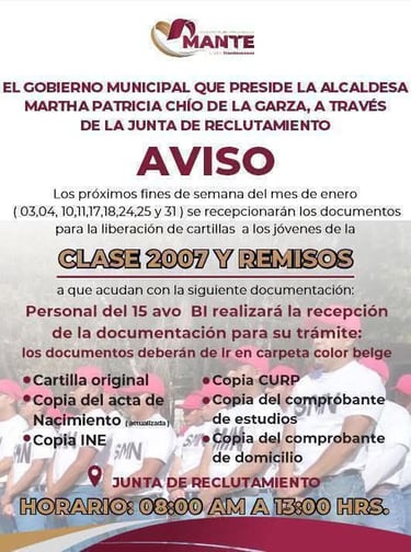 El Gobierno Municipal El Mante 2024-2027 , que preside Patty Chio, a través de la Junta de Reclutamiento, informa que :
