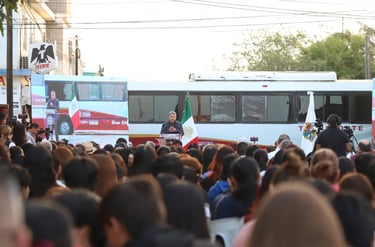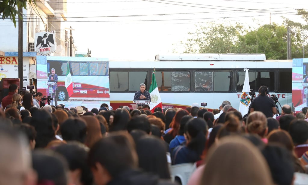 Iniciamos la mañanera a bordo del camión que entregamos a la Preparatoria Técnica Municipal de Altamira, acompañando a los estudiantes en su recorrido y en esta institución realizamos la Mañanera. 🚌🎓