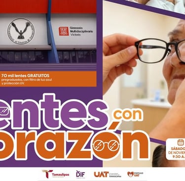 La Universidad Autónoma de Tamaulipas (UAT) realizará este sábado 22 de noviembre la jornada de evaluaciones visuales y entrega gratuita de lentes titulada “Lentes con corazón", reafirmando su liderazgo en responsabilidad social y su compromiso con el bienestar de la población tamaulipeca.