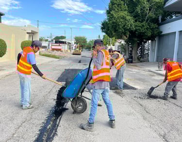 Cuadrillas de bacheo del Municipio, llevaron a cabo este fin de semana trabajos de rehabilitación de pavimento dañado en calle Norberto Treviño Zapata, entre libramiento Naciones Unidas y San Juan Bautista, de Privadas La Salle y calle Mariano Matamoros de la zona centro.