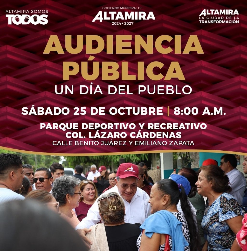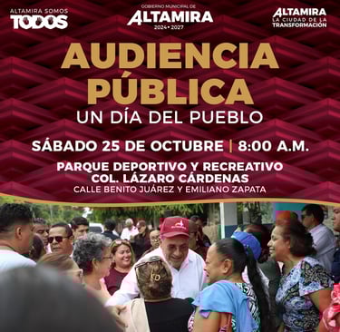 Además de las audiencias que otorgamos en las mañaneras, realizaremos audiencias públicas “Un Día del Pueblo” en las diversas colonias y ejidos de nuestro municipio para fortalecer más nuestra cercanía con las y los ciudadanos y buscar la solución a sus demandas.
