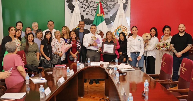 En la quincuagésima séptima sesión pública de Cabildo. Me dio mucho gusto, a nombre del Cabildo, entregar un reconocimiento a mi amiga Mia Fressy, fundadora del refugio Santa Rosa de Lima, por su admirable labor y compromiso en la protección de los animales.