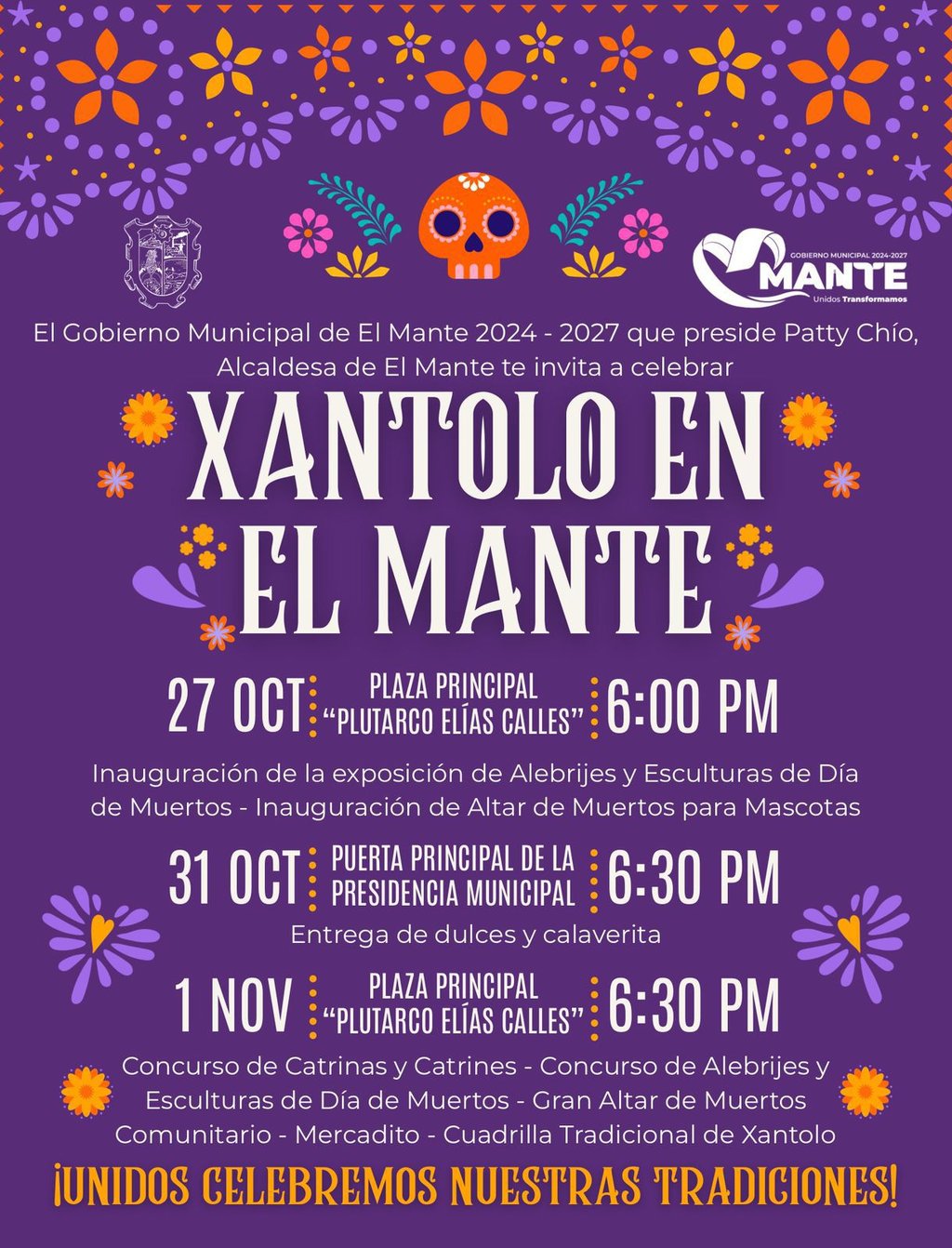 El Gobierno Municipal El Mante 2024-2027 que preside Patty Chio le invita a disfrutar de nuestras tradiciones con una gran fiesta llena de color, arte y cultura. 🌼✨