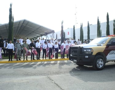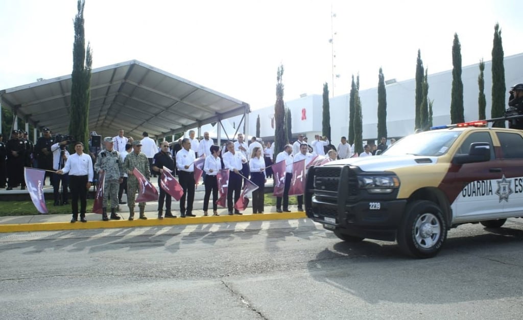 Durante el evento, en el Complejo Estatal de Seguridad Pública, el gobernador dio el banderazo a 14 vehículos blindados tipo Mamba y 15 camionetas pick up Ram 2500, para fortalecer el despliegue operativo de la corporación.