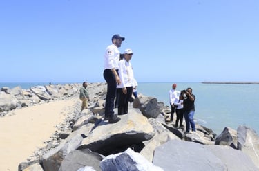 El gobernador y la titular de la Sedatu, junto con el director general de la Comisión Nacional de Vivienda, Rodrigo Chávez Contreras llegaron hasta la zona de las escolleras, donde apreciaron el canal de navegación y conocieron la zona para el desarrollo de la Terminal de Almacenamiento de Pemex, que se convertiría en la más grande e importante del noreste de México.