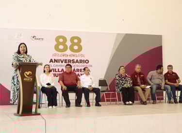 *En la ceremonia del 88 Aniversario de la elevación de rango político de Villa Juárez a Cd. Mante, celebrada en esta mañana en la explanada de la Presidencia Municipal, la Alcaldesa convocó a funcionarios de los tres niveles de gobierno, líderes de sectores y organizaciones a trabajar en unidad por la transformación de El Mante.
