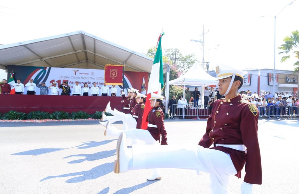 En un marco lleno de folclor, música tradicional mexicana, majestuosos vestuarios y mucho colorido, con representaciones de los caudillos revolucionarios, bailables y tablas gimnásticas, también desfilaron a lo largo del bulevar Tamaulipas 255 integrantes del Ejército Mexicano, Fuerza Aérea y Guardia Nacional, y 724 elementos de la Guardia Estatal, haciendo un total de más de 3,500 participantes.
