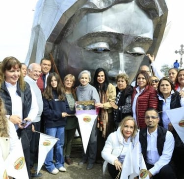 Hidalgo, Tamaulipas.- La doctora María de Villarreal, presidenta del Sistema DIF Tamaulipas, entregó este miércoles las pupilas de la Virgen de la Misericordia, bendecidas por el Papa León XIV, al Santuario de la Virgen del Chorrito, las cuales fueron colocadas en la monumental obra mariana que será inaugurada el próximo 12 de diciembre, consolidando a este espacio como el destino de turismo religioso más importante del noreste de México.