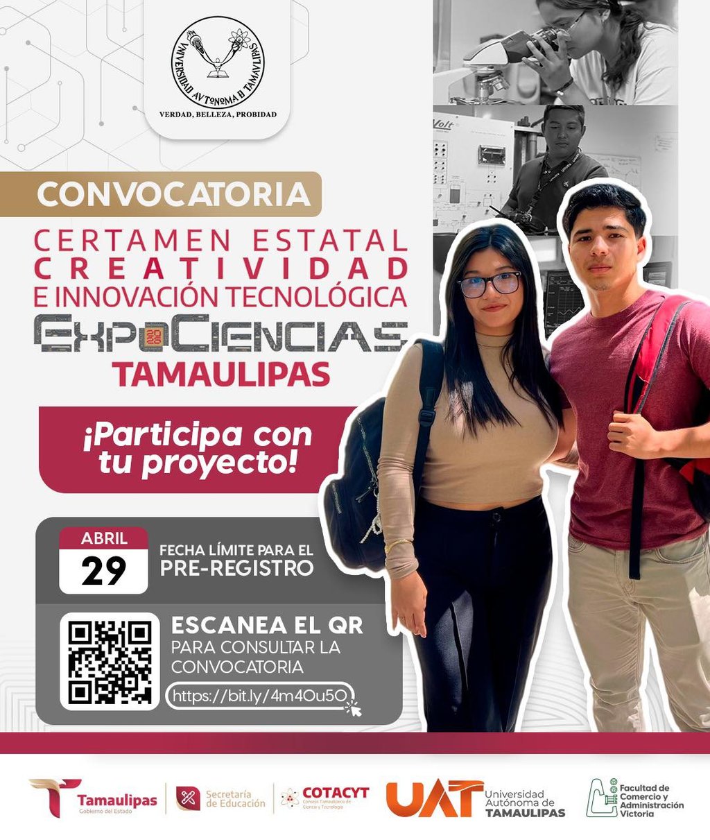 Llega ExpoCiencias Tamaulipas, donde el talento se convierte en soluciones reales… y este año, nuestra Facultad de Comercio y Administración Victoria (FCAV) será sede en Ciudad Victoria. 🎯