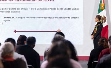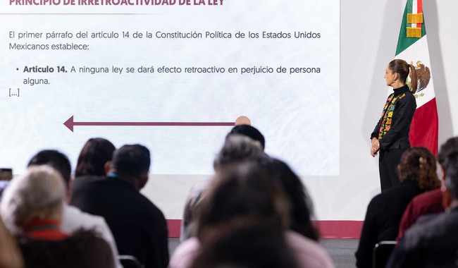 En la conferencia matutina: “Las mañaneras del pueblo”, la Presidenta de México, Claudia Sheinbaum Pardo, pidió al coordinador general de Política y Gobierno, Arturo Zaldívar Lelo de Larrea, explicar el posicionamiento de su administración: se debe respetar el Artículo 14 de la Constitución, el cual establece que no debe haber retroactividad en las leyes.