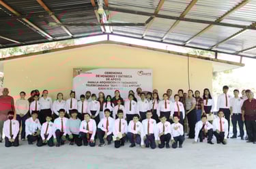 Telesecundaria Juan Quiroz Espinal, ubicada en el ejido 18 de marzo, para hacer entrega del un apoyo que permitirá concluir con la obra de techado, proyecto encabezado por la liga de padres de familia .