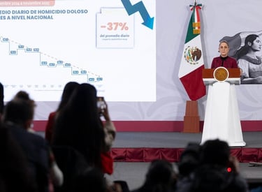 HOMICIDIOS DOLOSOS DISMINUYEN 37% DE SEPTIEMBRE 2024 A NOVIEMBRE 2025; ES EL NOVIEMBRE MÁS BAJO DESDE 2015: PRESIDENTA CLAUDIA SHEINBAUM