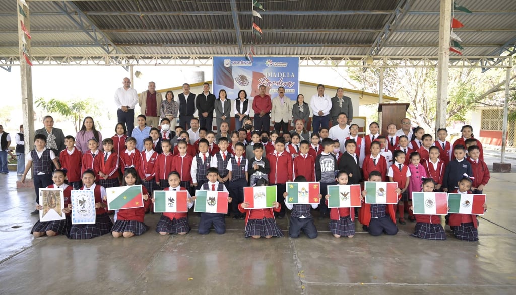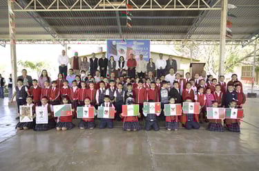 Este 24 de febrero, Mariela López Sosa, presidenta municipal, asistió a la Conmemoración del Día de la Bandera en la Escuela Primaria Venustiano Carranza, ubicada en la colonia Primero de Mayo, bajo la dirección de la maestra Elvia Silva Tinajero.