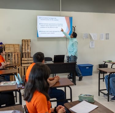 Mencionó que el programa bilingüe representa una de las principales fortalezas de la escuela, al permitir que los jóvenes cursen diversas asignaturas en inglés, fomentando así sus competencias lingüísticas y académicas desde el nivel bachillerato.