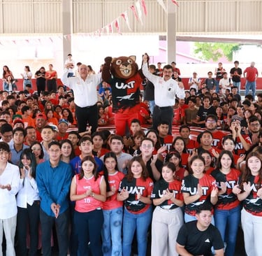 Más adelante dialogó con becarios de los posgrados avalados por SECIHTI y se reunió con la comunidad estudiantil en la Cancha de Usos Múltiples, donde subrayó la importancia del trabajo coordinado entre universidad, gobiernos, sector académico, empresas y sociedad para avanzar con mayor firmeza hacia los objetivos institucionales.
