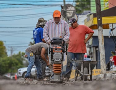 Atendiendo la instrucción del alcalde Lalo Gattás, en el arranque de la jornada semanal se retomó en la calle 27 Lauro Rendón, de la colonia Nacozari, tareas de nivelación de superficie y recubrimiento de excavaciones realizadas por COMAPA para la instalación de nueva tubería.