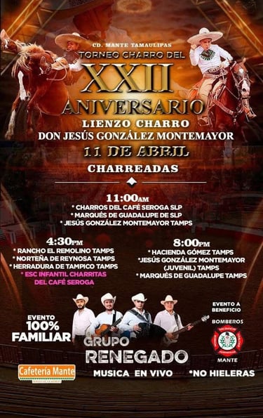 El Gobierno Municipal El Mante 2024-2027 te invita a disfrutar del Torneo Charro organizado por la Asociación "Don Jesús González Montemayor" en su