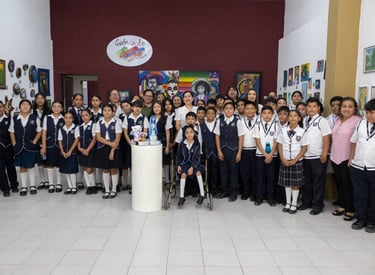 La Presidenta Municipal Patty Chío acompañó a estudiantes de las escuelas: Primaria Alberto Carrera Torres y primaria Juana de Asbaje a la galería de Arte Ramón Cano Manilla y observar la muestra pictórica colectiva