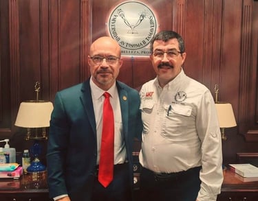 " Fortaleciendo la vinculación de la Universidad Autónoma de Tamaulipas (UAT) con organismos de la sociedad, el rector Dámaso Anaya Alvarado sostuvo un encuentro con Raúl Alberto Betancourt Ortiz, presidente nacional de Líderes Juaristas de México A. C. "