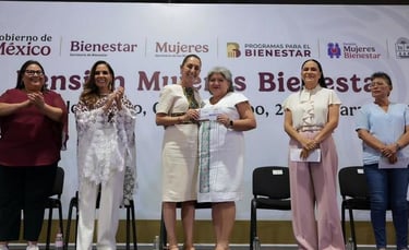 La Presidenta de México, Claudia Sheinbaum Pardo, encabezó la entrega de tarjetas de la Pensión Mujeres Bienestar en Felipe Carrillo Puerto, Quintana Roo —entidad donde casi 30 mil mexicanas reciben este apoyo— donde destacó que las mujeres mayas son pioneras en la lucha por los derechos de los pueblos originarios y de todas las mujeres, a través de personajes como Elvia Carrillo Puerto y Rita Cetina.