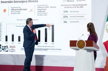 El Gobierno de México, a través de la Secretaría de Economía, informó que México rompió récord en Inversión Extranjera Directa (IED) al llegar a casi 41 mil millones de dólares al tercer trimestre de 2025, que en comparación con 2024, representa un incremento del 15 por ciento, lo que significa que se está invirtiendo en el país en una mayor proporción a lo que se esperaba.