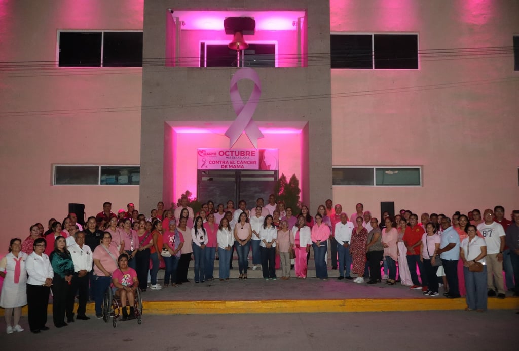 La Presidencia Municipal se iluminó de rosa en el arranque de las actividades del mes de octubre
