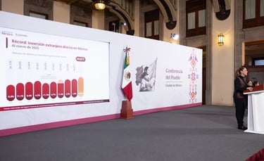 PRESIDENTA CLAUDIA SHEINBAUM DESTACA RÉCORD EN INVERSIÓN EXTRANJERA DIRECTA; CRECIÓ 10.8% RESPECTO A 2024