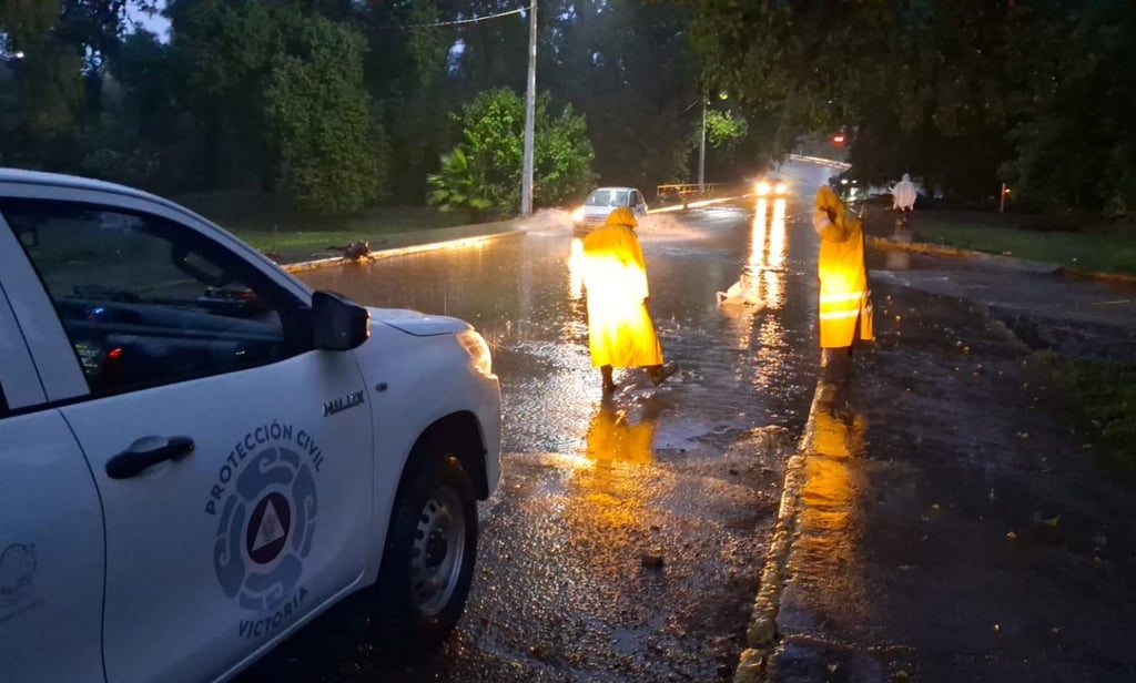 Protección Civil de Victoria informó que se mantiene saldo blanco por la intensa lluvia que se registra en la ciudad, la cuál provocó rebase de limite de agua en cinco cruces viales del río San Marcos.