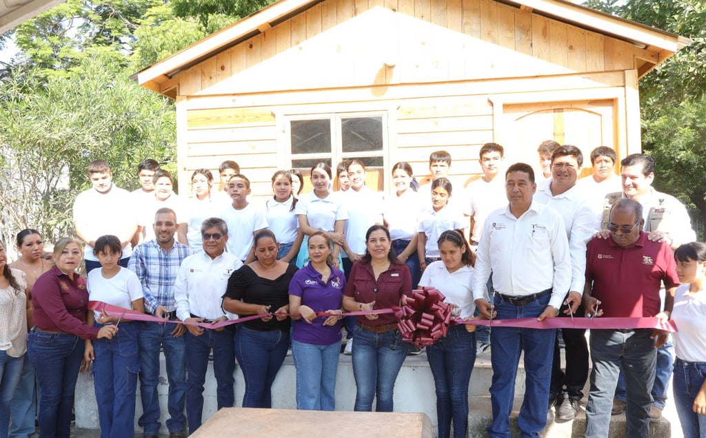 Entrega aula provisional con especificaciones solicitadas por autoridades y padres de la Telesecundaria del ejido 5 de mayo, con el compromiso de gestionar una de concreto, para que alumnos ya no estudien bajo un árbol.