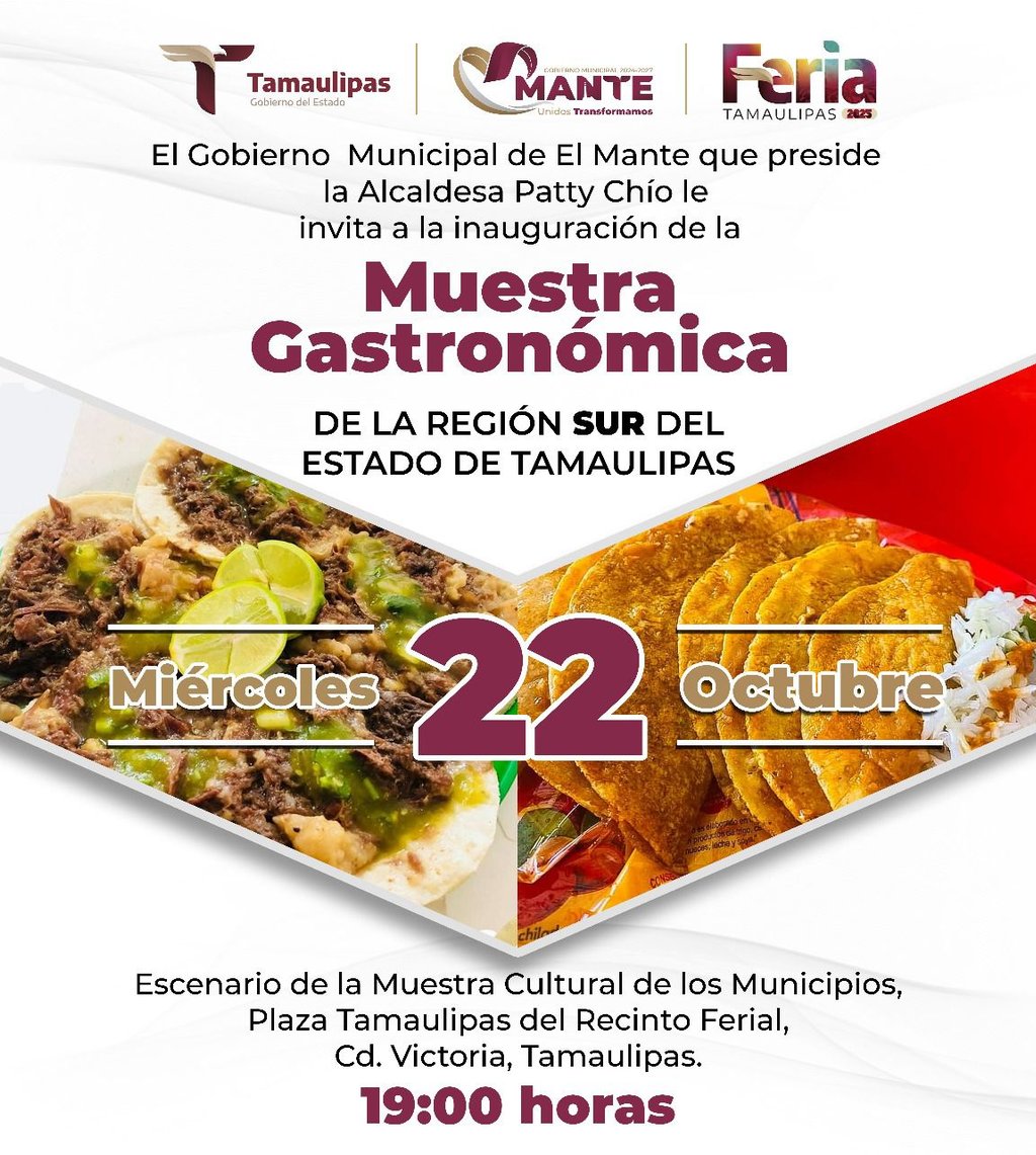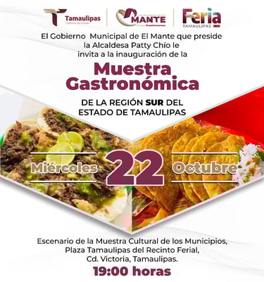 🍽️✨ El Gobierno Municipal El Mante 2024-2027 que preside la alcaldesa Patty Chio te invita a la inauguración de la Muestra Gastronómica de la Región Sur del Estado de Tamaulipas 🇲🇽