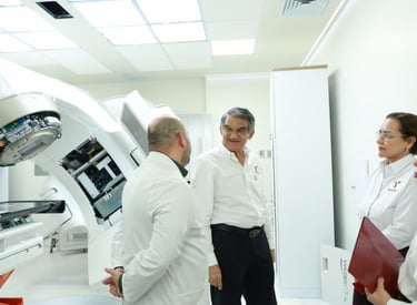 Acompañado de la secretaria de Salud, Adriana Marcela Hernández Campos, el mandatario arribó la tarde de este martes a este centro hospitalario, donde fue recibido por el director, Francisco Alberto Velasco Canseco. Durante su recorrido, saludó a pacientes y dialogó con el personal, para posteriormente supervisar el área donde se encuentra el acelerador lineal.