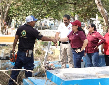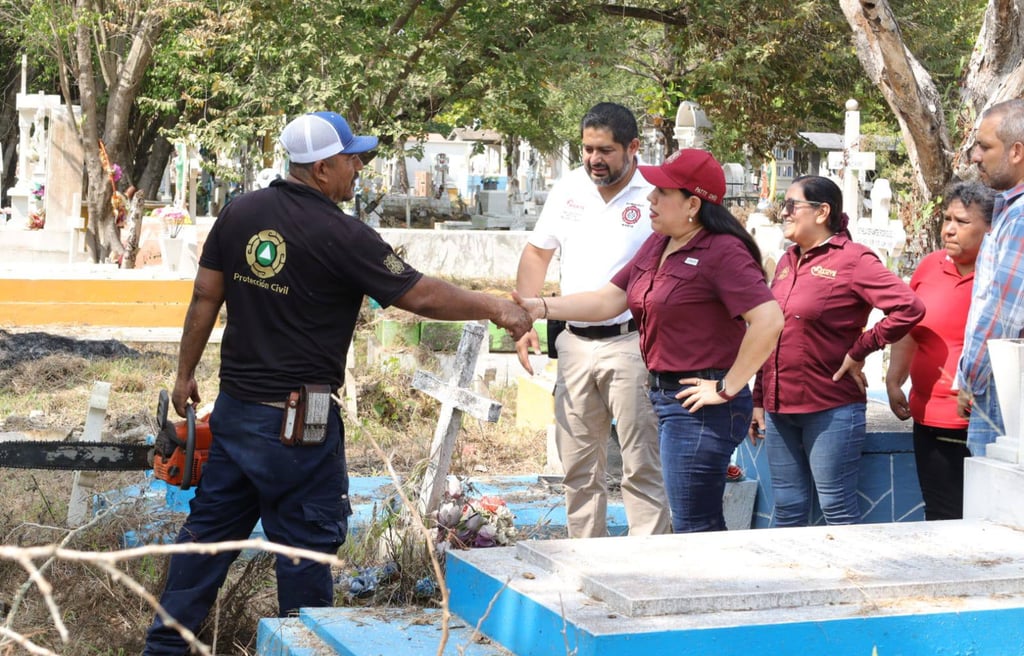 Esta mañana la Presidenta Municipal Patty Chio supervisó los trabajos de limpieza y pintura que se realizan en los cementerios municipales previo a la celebración del Día de Muertos.