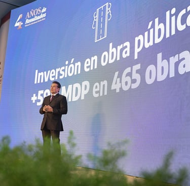 En este camino construido, han sido rehabilitadas 153 vialidades, se han realizado 179 acciones en escuelas con edificación de aulas, techumbres y cisternas, rehabilitación de 14 mil baches y 96 mil metros cuadrados de pavimento asfáltico y concreto hidráulico.